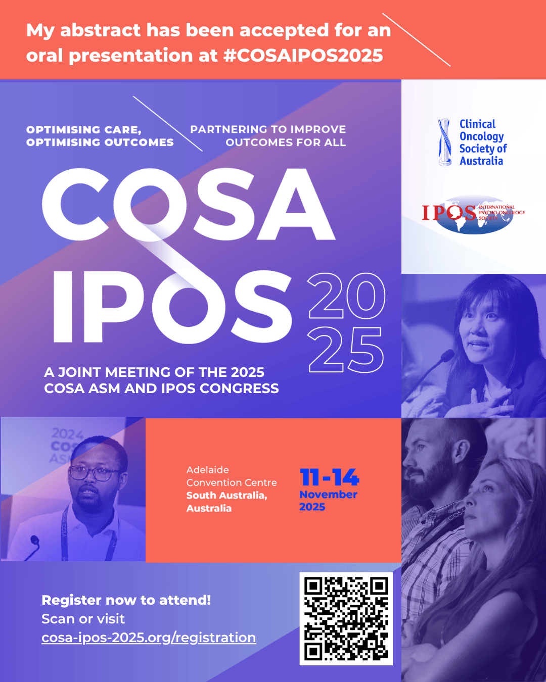Just registered for COSA-IPOS 2025 👏 Can’t wait to join global experts in oncology & psycho-oncology this November in Adelaide.